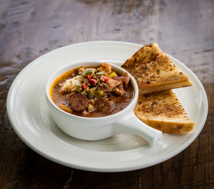 Chicken, sausage, shrimp, bell peppers, Maui onions, and rice combined in a rich Cajun stock. Choice of serving size: cup or bowl. Served with garlic bread.