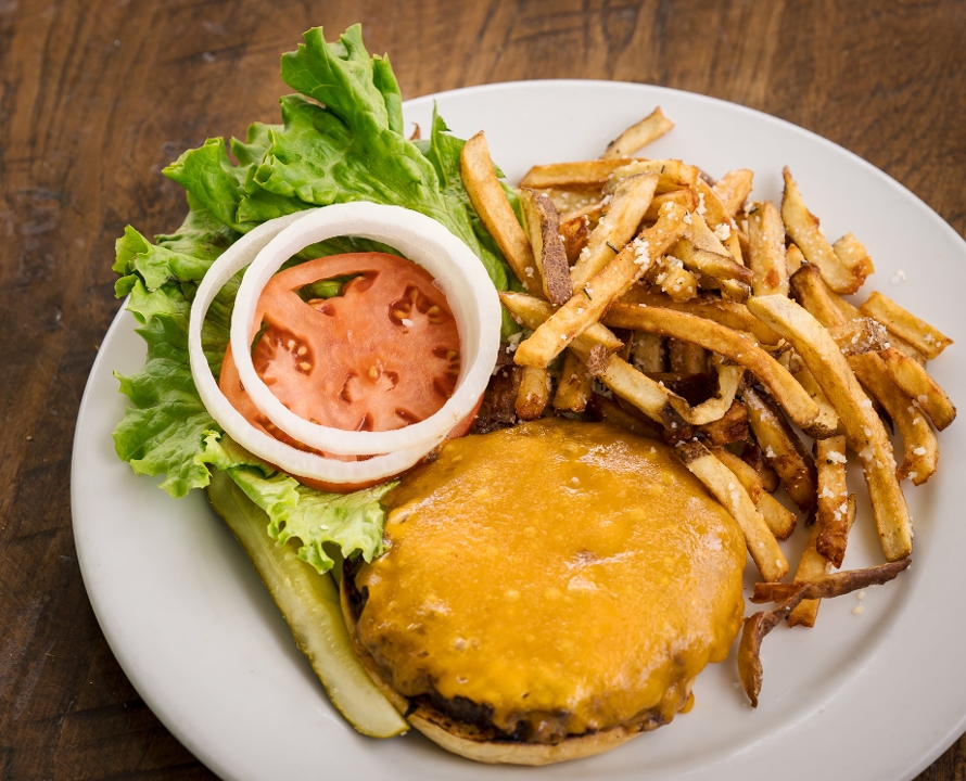Seasoned and grilled 7oz grass-fed burger topped with your choice of mild or Irish cheddar. Includes choice of one fresh side