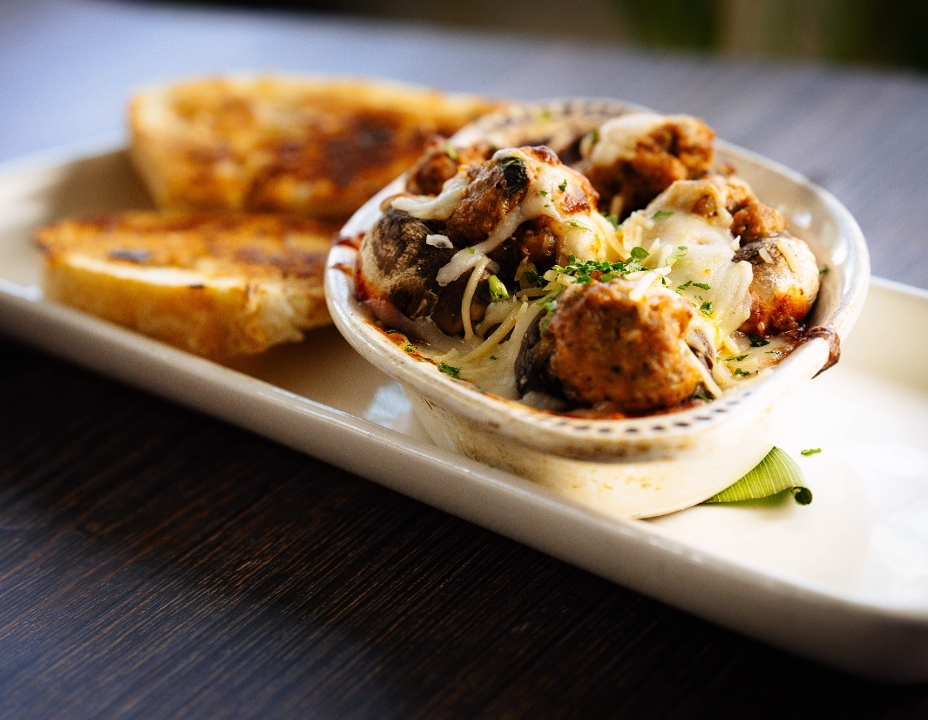 Button mushrooms stuffed with fresh herb garlic sausage, covered with marinara and three cheese blend then baked to perfection. Topped with Parmesan and parsley. Add garlic bread for $2.