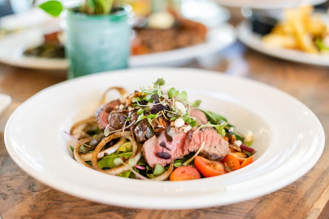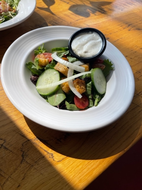 Grilled sirloin prepared medium-rare then thinly sliced and placed on a bed of mixed greens, topped with Maui onion, cherry tomato, cucumber, bacon, and gorgonzola crumbles. Finished with balsamic reduction drizzle and side of gorgonzola dressing