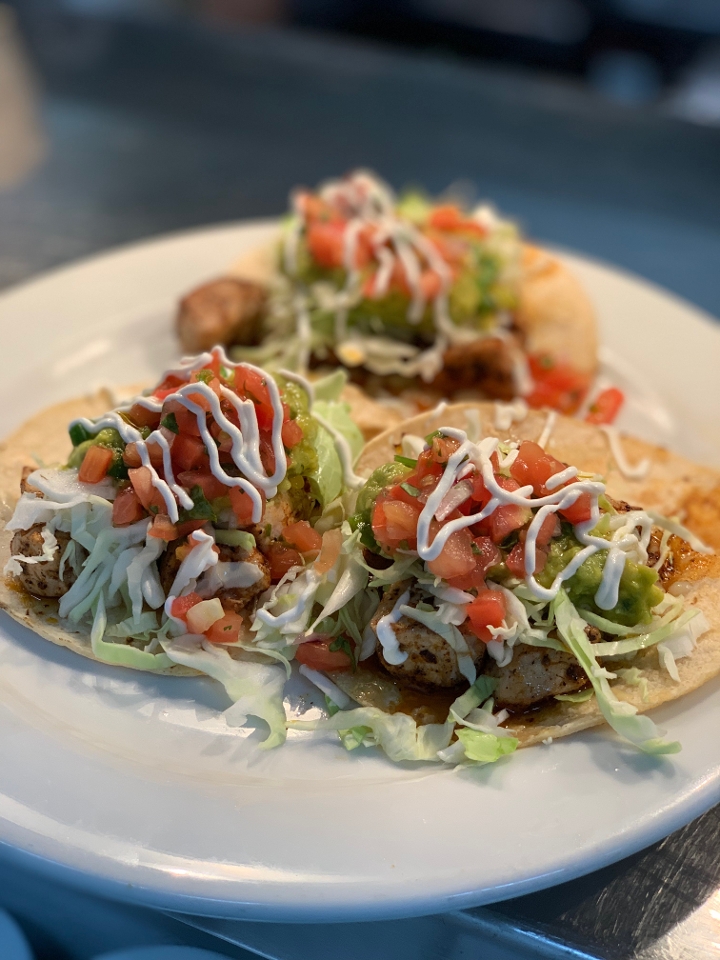 Three grilled corn tortillas with melted three cheese blend, Cajun grilled fresh catch, cabbage, fresh guacamole, sour cream, pico de gallo, and finished with scratch habanero oil.