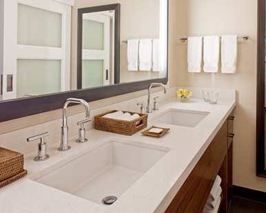 The completely renovated Lagoon Tower Cabana with two queen-sized beds, features 1st floor walkout rooms with Partial Ocean views on either side of the Dolphin Quest Lagoon. These new Lagoon Tower guest rooms now have wireless internet service available (nominal fee). Upgrades to the bathrooms include twin vanities and a shower/bathtub combination with premium hand-held showerheads. Each room is also equipped with a mini-refrigerator, coffeemaker, in-room safe, Hilton Alarm Clock Radio with an MP3 port, 37-inch HDTV and features our signature line of "Kohala Spa" bath amenities. These rooms complement our island in textures and colors. Basalt tile floors for the entry and bath evoke images of the volcanic beaches of Hawaii. Walnut with rich grains and carved Kapa-like figures add to the credenza, headboards and night stands. The room is enveloped by Cream walls like the clouds on the slopes of Mauna Kea and waves that crash on the shore.