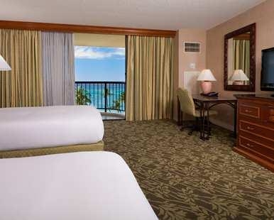 Our spacious Two Double Deluxe Ocean View guest rooms feature a substantial view of the Ocean from your private lanai (balcony) with outdoor seating. The Hilton Serenity Dream Bed & Bath collection is standard, as well as our signature bath line of "Kohala Spa" amenities. Rooms also include the Hilton Alarm Clock Radio with MP3 port, wired high-speed internet access (nominal fee), mini-refrigerator, coffeemaker and in-room safe.