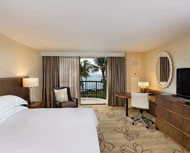 Our spacious One King Bed Deluxe Ocean View guest rooms feature a substantial view of the Ocean from your private lanai. Each room has a private lanai (balcony) with seating, and twin size sofa sleeper. The Hilton Serenity Dream Bed & Bath collection is standard, as well as our signature bath line of "Kohala Spa" amenities. Rooms also include the Hilton Alarm Clock Radio with MP3 port, wired high-speed internet access (nominal fee), mini-refrigerator, coffeemaker and in-room safe.